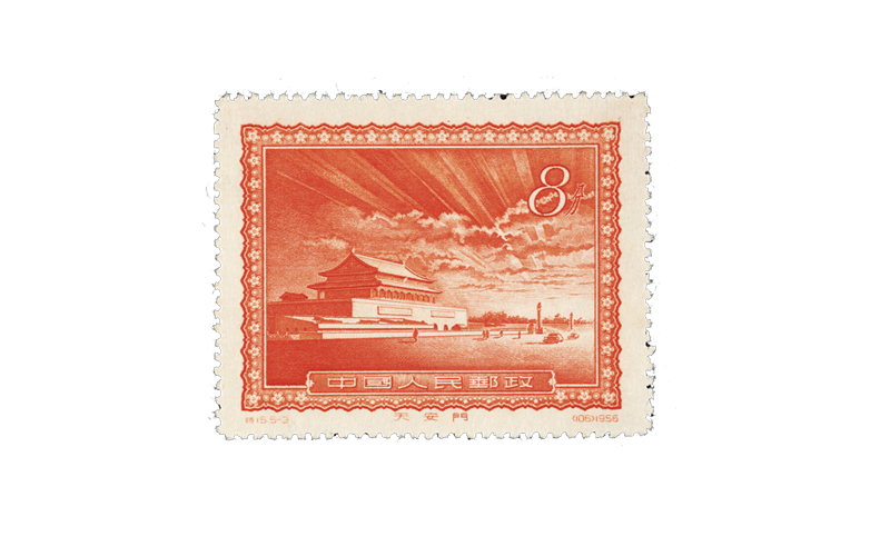 ★1956年特15“首都名胜”8分天安门图“放光芒”撤销发行邮票一枚,背盖香港杨乃强收藏章,新中国着名珍邮之一,品相完美者极为珍罕,上品