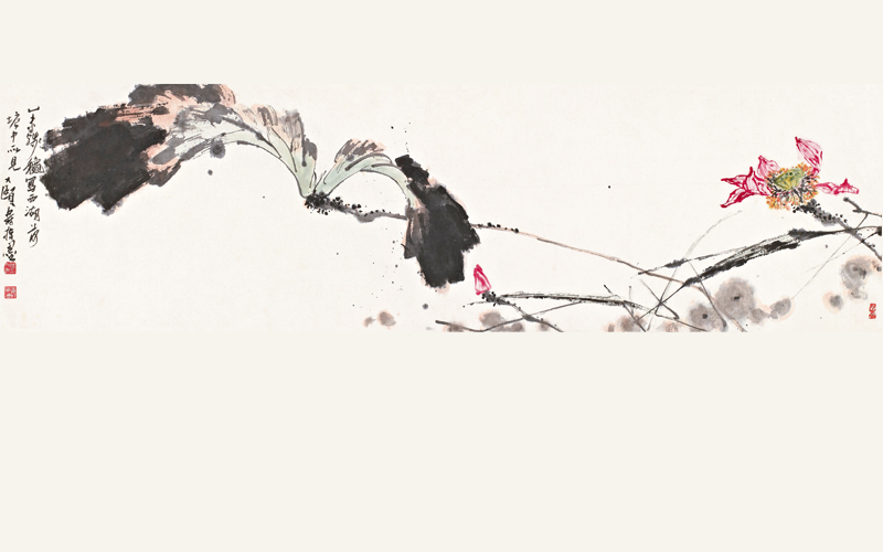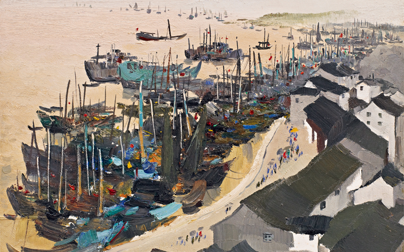签名:荼 八○ 展览:“行到水源处—吴冠中”,1990年4月28日至5月2日,莱佛士城会议中心,新加坡;1990年5月8日至19日,万玉堂,香港;1990年5月26日至31日,中华汽车有限公司,台北