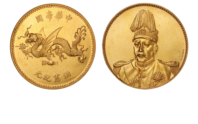 1916袁世凯像中华帝国洪宪纪元L.GIORGI签字版飞龙金质样币一枚(L&M1115),重量:35.09克,镜面版底精铸,铸工精湛,堪称中国近代机制币经典之作,保存完美无暇,PROOF
