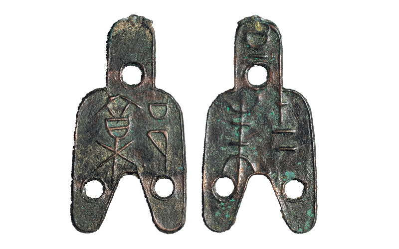 战国时期“鄣”背“廿一·十二朱”三孔布一枚,铭文“鄣”为地名,赵国属地,今邯郸境内,文字俊逸挺拔,呈传世古色,保存完美,此前所有钱币书刊、文献均未见记载,迄今仅发现此一枚,极为珍罕