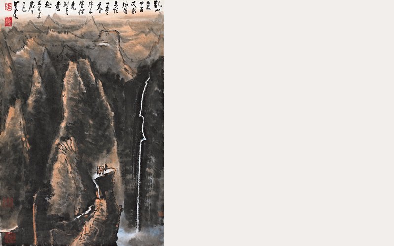 画作绘于1989年,即李可染逝世之年,是他生命最后的作品之一。此作包罗千岩万壑,在磅礴的气象中,蕴含着温暖的情调,笔墨运化近乎自由之境,堪称其暮岁力作。