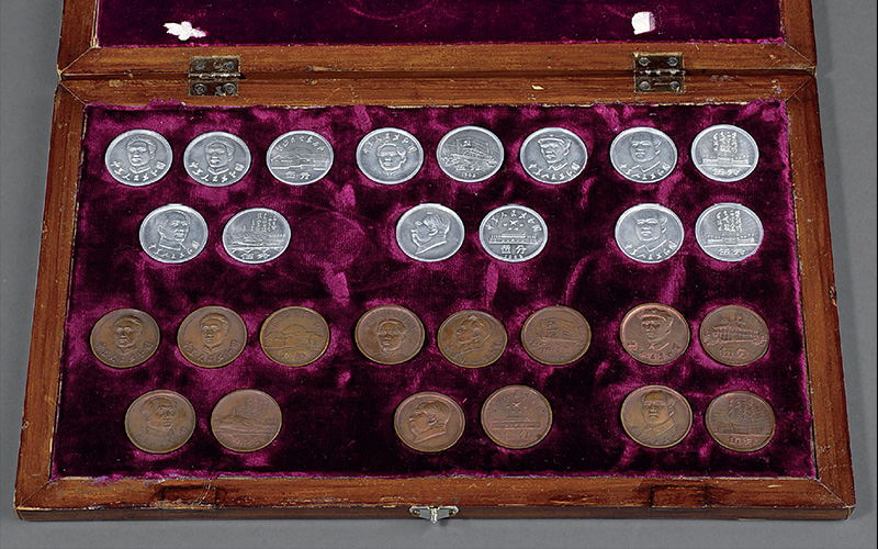 1968年至1969年第二版人民币硬分币毛泽东像未采用稿试铸样币一组二十八枚,其中铝质、铜质各十四枚,直径均为25毫米,其中,铝质1分一枚,铜质1分二枚,其余均为5分;此组样币均未见官方记载,雕刻精美,铸造规整,材质精良;二十八枚毛泽东像有青年、中年及老年多种,背面配韶山、南湖船、遵义会议会址、延安宝塔山、天安门、人民大会堂等不同革命圣地图案,雕刻精致美观,铸工精湛;此样币全数置于专用木盒内,部分为一种二枚,正、背面放置,以方便观览,应属造币厂试铸后上呈审批之样品,均未正式铸行,每枚均存世极罕,二十八枚同时呈现,当属绝无仅有,为海内外钱币365bet足球投注网站_365bet体育在线网站_体育平台送365彩金 有史以来首次,不仅是珍贵的人民币样币,更是文革时期的珍贵货币文物,具有重要的货币史料价值与收藏价值,完全未使用品