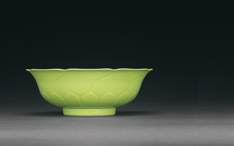 21cm. Diam. 同品种器以黄釉者曾见,厚釉者仅英国维多利亚和阿尔伯特博物馆(the Victoria and Albert Museum)藏有15.5公分小碗一件,而此尺寸之大碗未见海内外公私着魁,极为珍罕。
