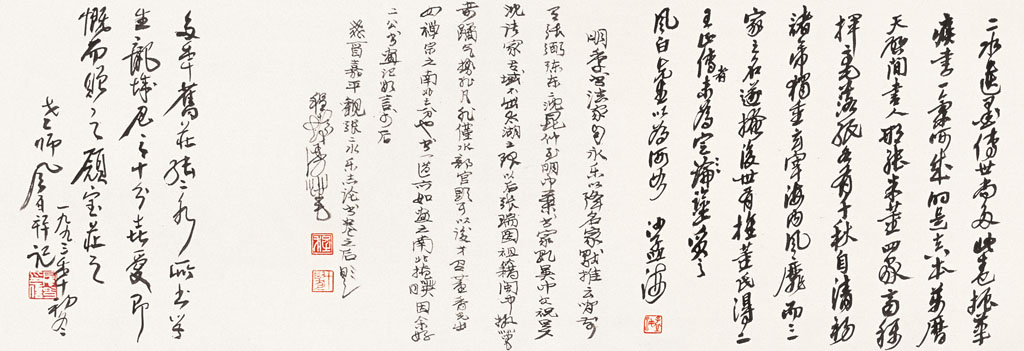 后纸:沙孟海、程十发、蒋风白、傅申等数人题跋,或论张瑞图书风,或言此卷转赠因由,或叙此为张氏晚年精品,所论不同,然均极为推崇其书学价值,各家跋文与钤印皆从略。
