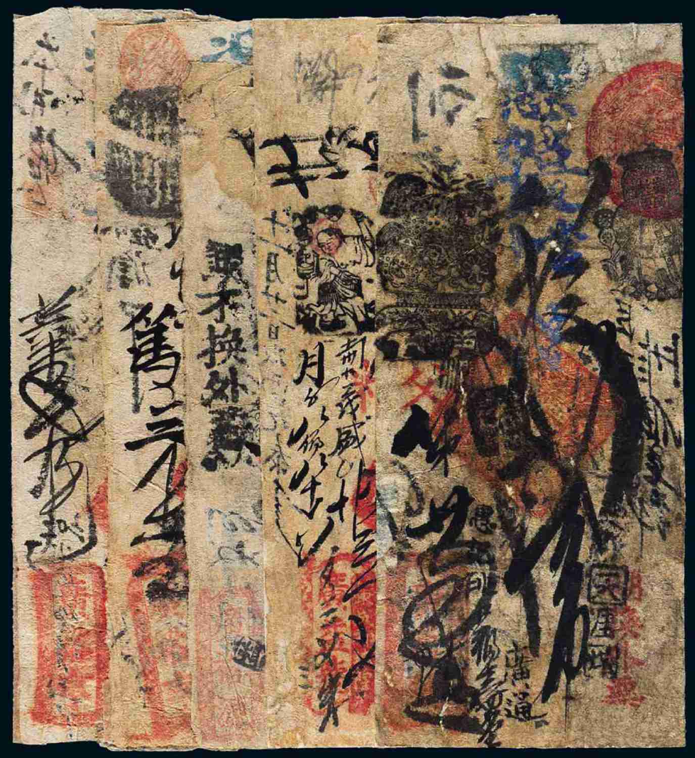 清代北京钱庄当十制钱票“广裕亨”壹吊及贰吊、“广裕源”贰吊、“广益号”壹吊、“广通号”叁吊各一枚,计五枚,馨悟堂旧藏,七成新