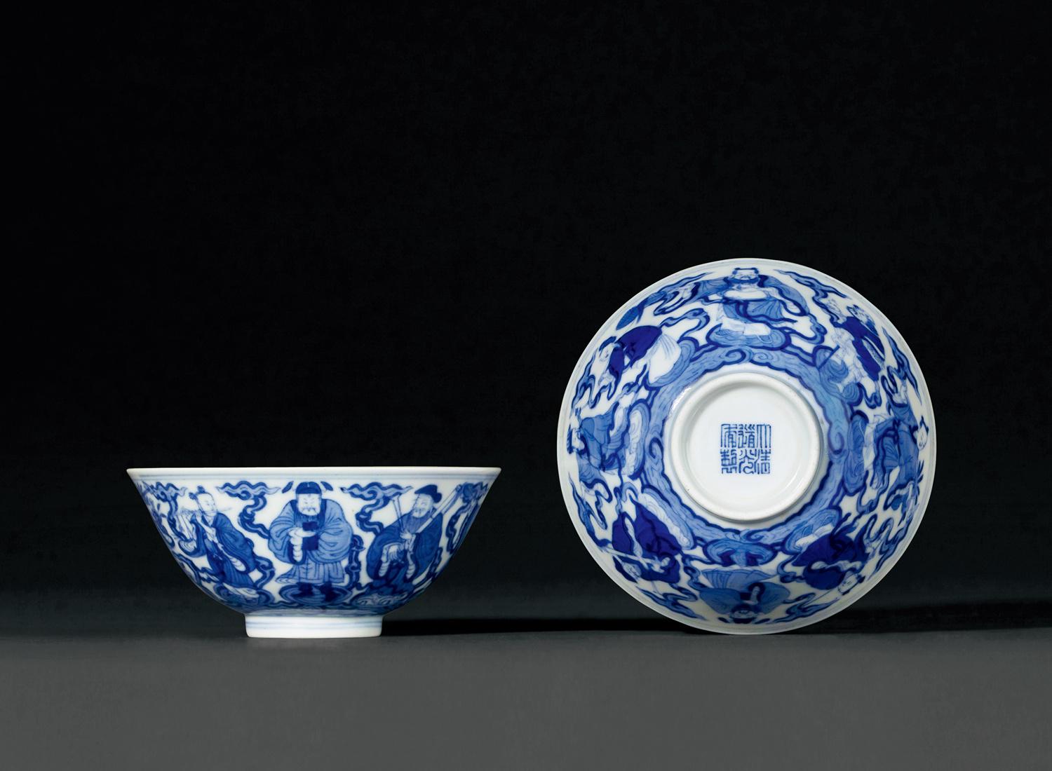 青花八仙祝寿图碗为清代官窑传统品种,见有大小不同尺寸,拍品为最小者。