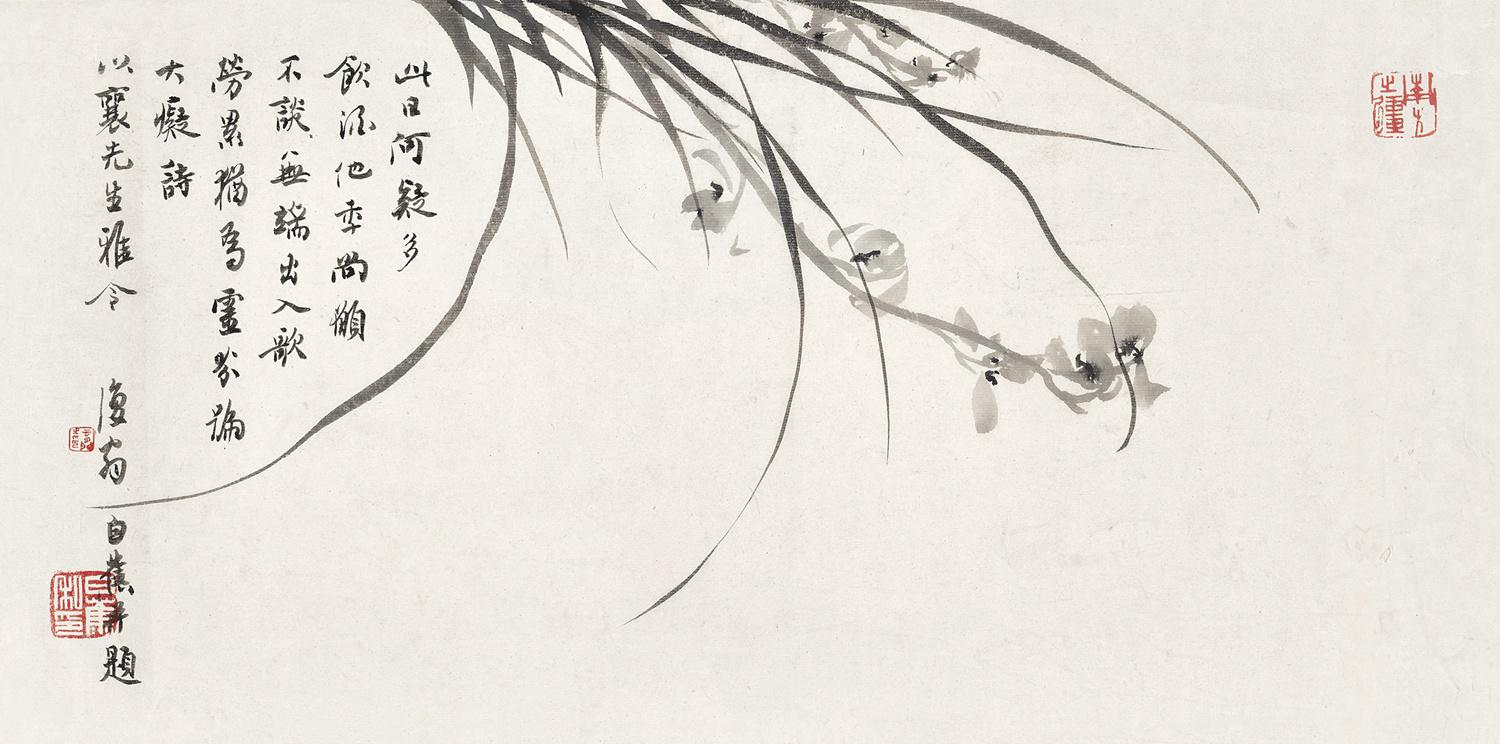 题识:此日何疑多饮酒,他年尚愿不谈诗。无端出入歌劳累,犹为灵芬号大痴。诗。以襄先生雅令,复翁白蕉并题。