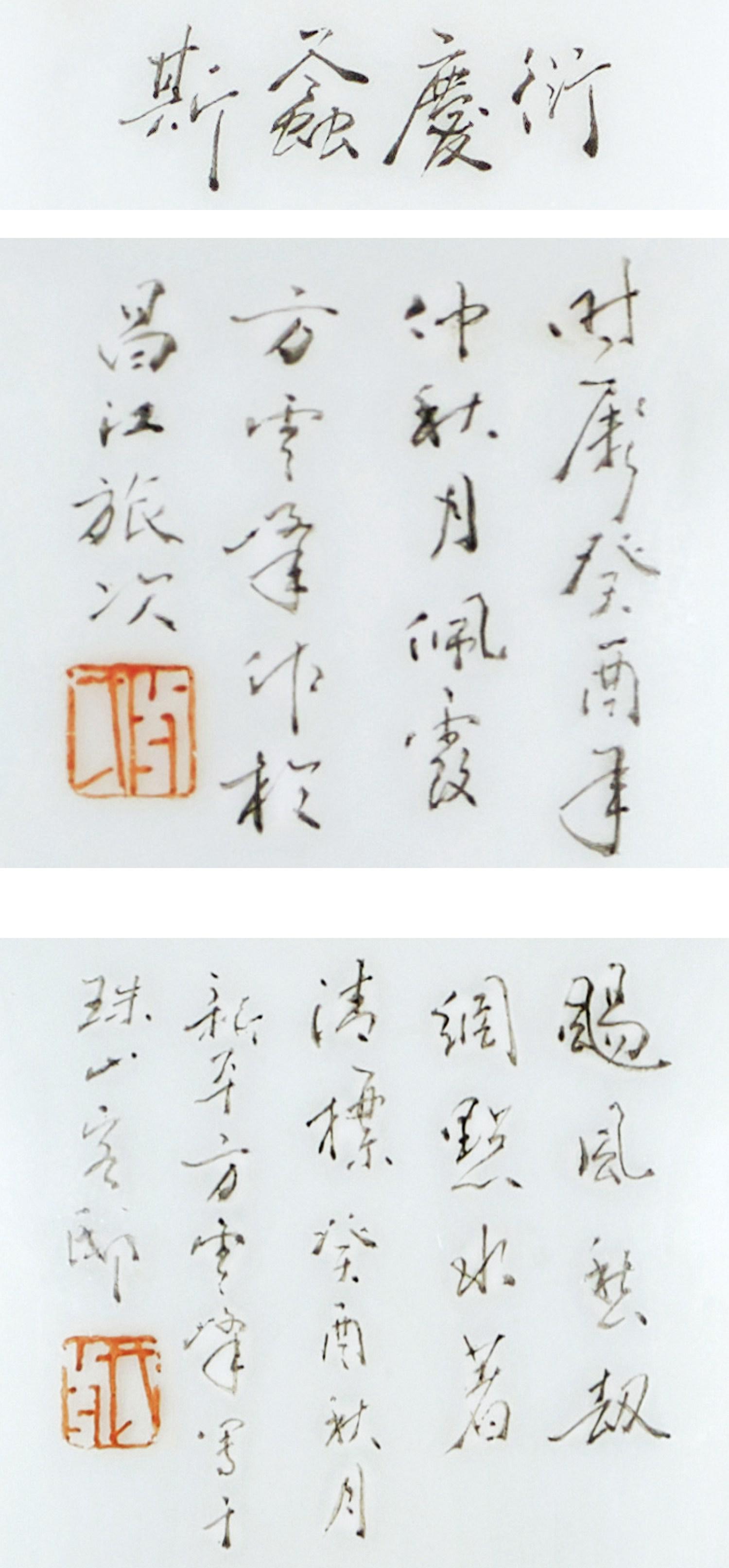 拍品两只画面虽不相同,但均以秋意图为饰,显为原配。成对保存,较为难得。