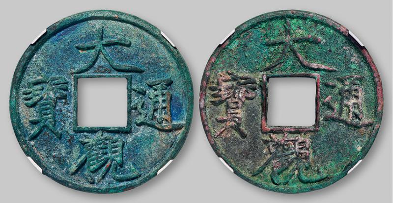 北宋“大观通宝”折十二枚,直径:41.4毫米、41.2毫米,均为GBCA 美85