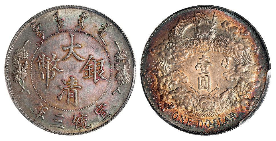 宣统三年大清银币壹圆一枚,Y-31/LM-37,包浆色彩浓郁,PCGS AU Detail