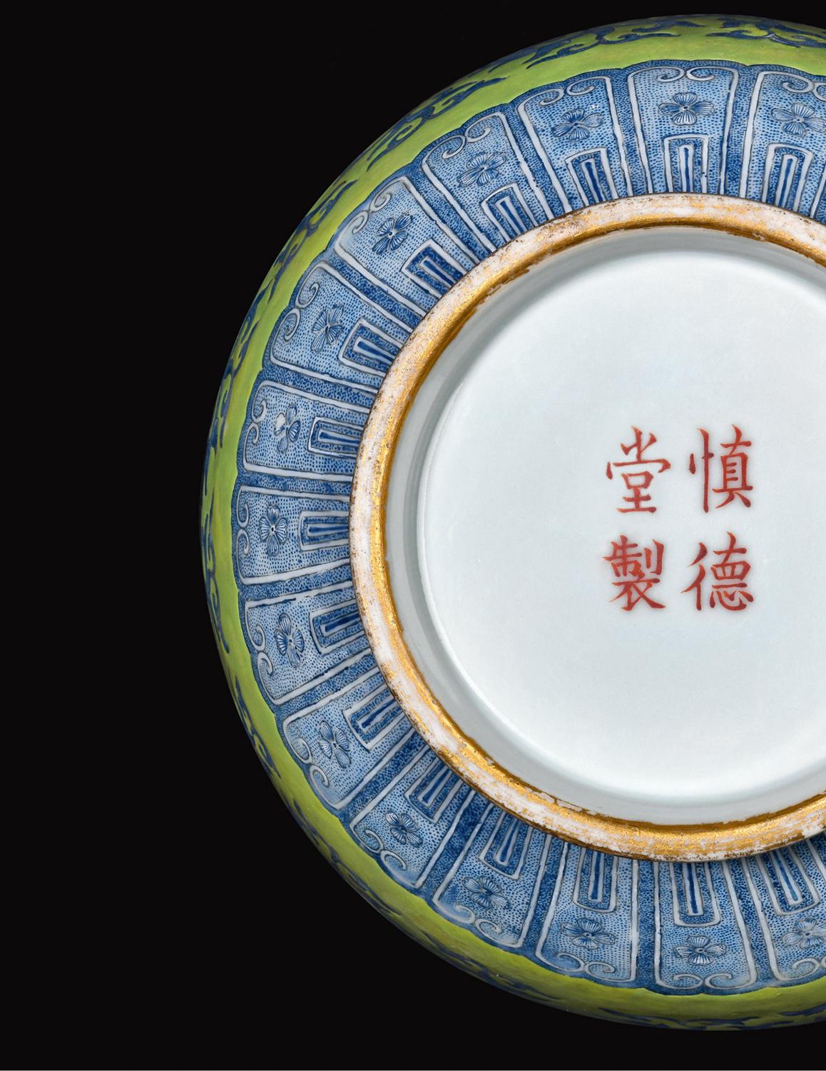 据《清宫造办处活计清档》载,自道光十三年(1833),皇帝下旨烧造慎德堂制款瓷器开始,至道光三十年道光帝驾崩,景德镇御窑厂每年均烧造此一堂名款瓷器,作为年贡御瓷。