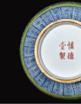 拍品外壁以翠绿色为地,蓝料彩绘缠枝西洋花卉纹,口沿和足际则以松石绿釉为地,矾红描金彩绘如意头纹和卷草纹。通体纹饰描绘极为细致华丽,具有明显的西洋风格,而与同时期习见的官窑瓷器迥然有别,或为搭配慎德堂内西式用器而特意烧造。