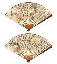 成扇 设色纸本、水墨洒金笺