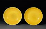 清道光 黄釉盘一对
