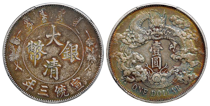 宣统三年大清银币壹圆一枚,Y-31/LM-37,双面五彩氧化,PCGS XF Detail