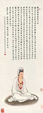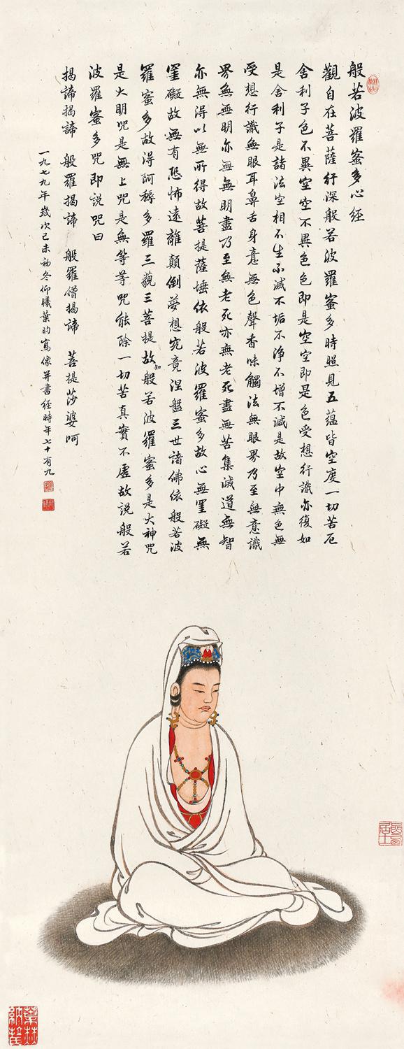 题识:般若波罗蜜多心经。(文略)一九七九年岁次己未初冬,仰曦叶昀写像并书经,时年七十有九。