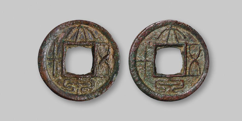 新莽时期“大泉五十”合背一枚,直径:29毫米,美品