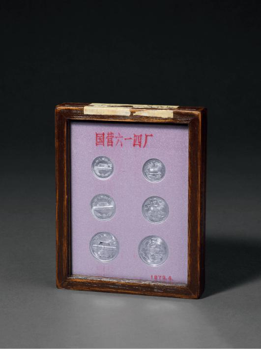 1975年第二版人民币硬分币“农作物”未采用稿试铸样币1分、2分、5分二套六枚,铝质,图案设计美观,铸造工艺精湛,并具有鲜明的时代特征;与过往偶见“农作物”试样所不同的是,此背面为天安门与麦穗齿轮图,无年份,二面图案如此配置之试打样币极其罕见,孙克勤主编《中国现代流通硬币标准目录》未载,公开拍卖亦属首次,同时二套上拍前所未有,颇具震撼力;此二套样币放置于1975年4月国营六一四厂专用木盒之中,正、背二面均得以展示,木盒顶端贴有封条,内中样币保存完美无瑕,作为特殊历史时期的货币文物,具有重要的新中国铸币史料价值和珍贵的货币文物收藏价值,均为完全未使用品