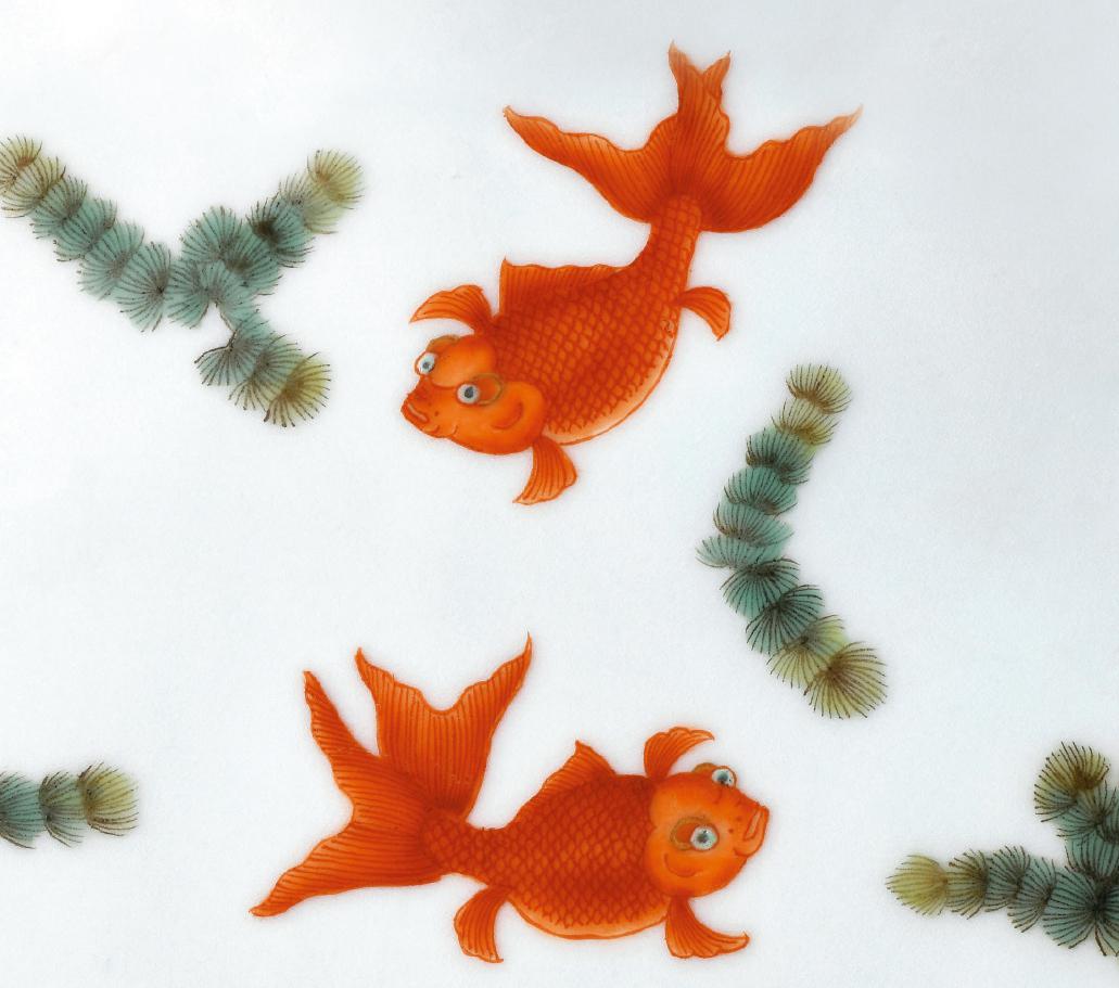 金鱼身姿优美,又因与金玉谐音,寓意金玉满堂,故而成为瓷器上的吉祥纹饰。