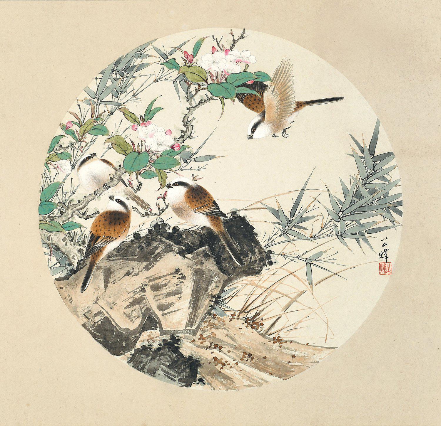《春光好》系画家在方形纸幅上画出圆形画心,饶有意趣,全纸尺寸为47.5×49 cm. 约2.1平尺。