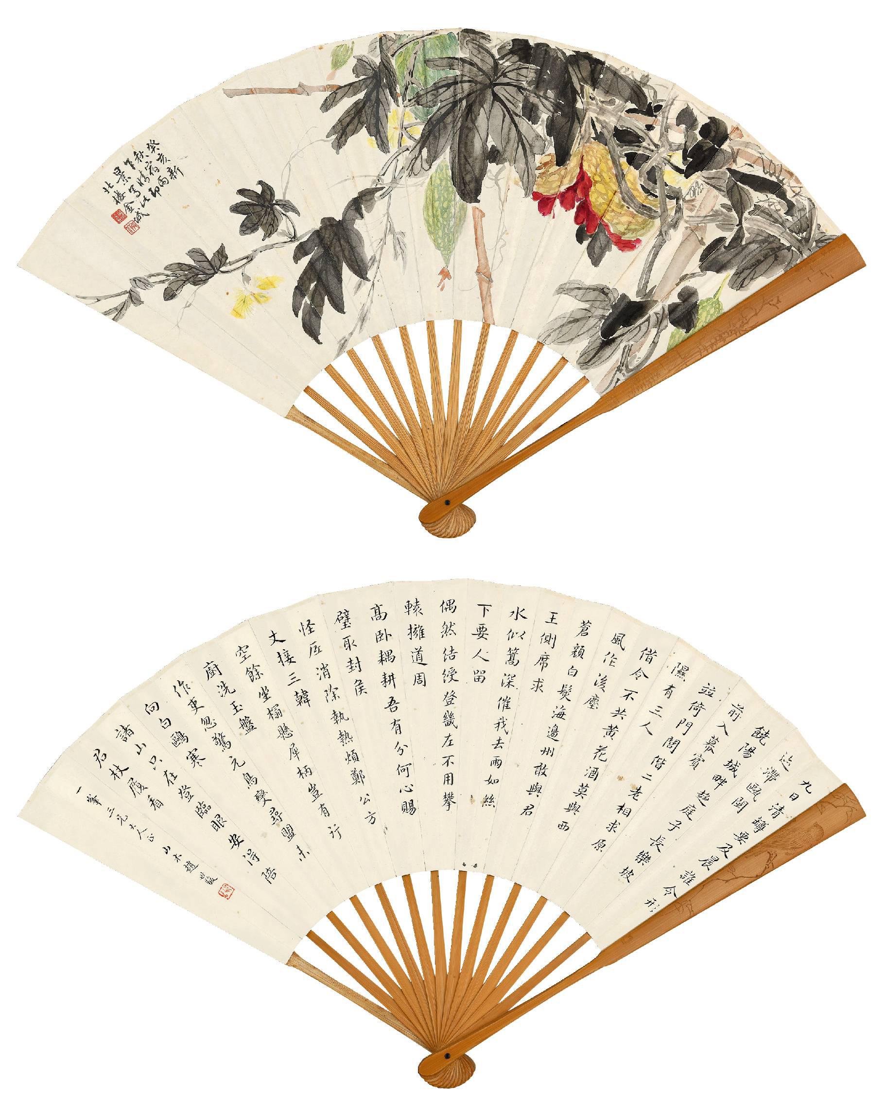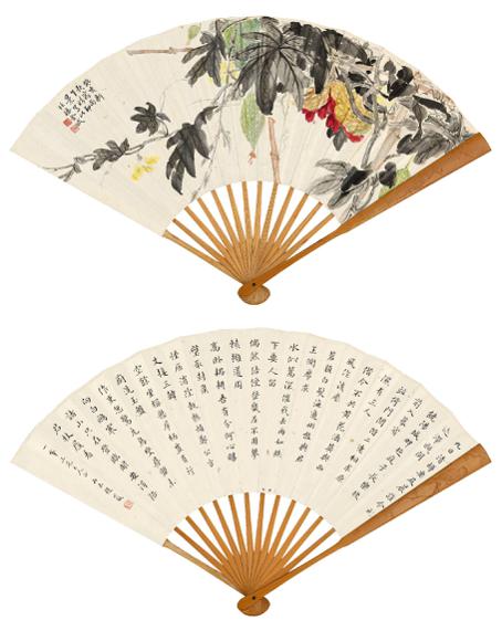 正面:癸亥(1923年)新秋,宿雨乍晴,即景写此。北楼金城。 钤印:金城印、拱北