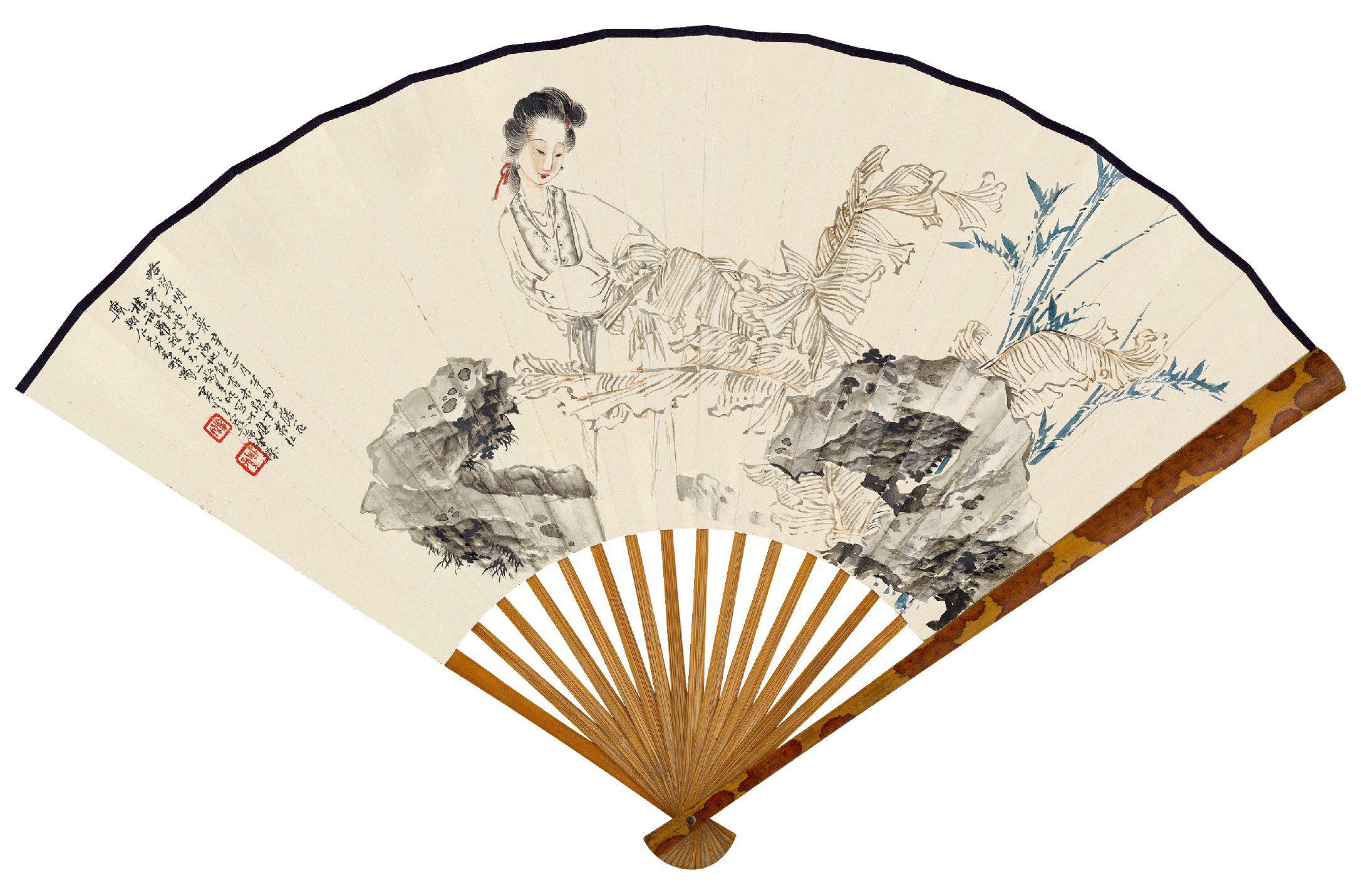 成扇 设色纸本、水墨发笺