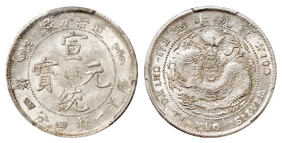 造币分厂宣统元宝中心阳“吉”库平一钱四分四厘银币/PCGS MS62+