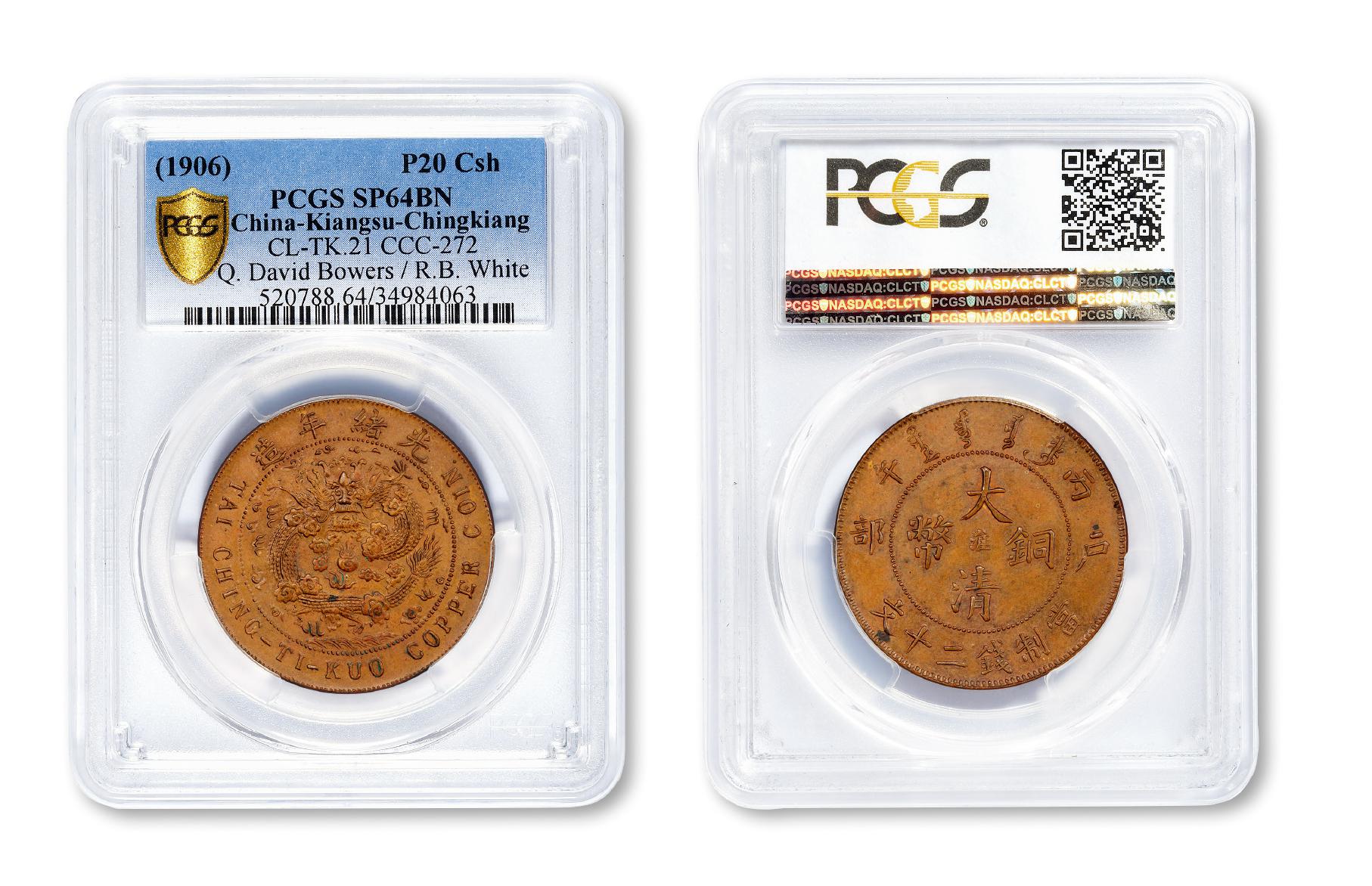上,以50.4万美元的成交价,与同场拍品四川当三十水龙红铜样币并称拜伦·怀特(R.Byron White)集藏之“绝代双骄”,珍贵之至,PCGS SP64BN,目前为该公司此品种唯一入盒纪录