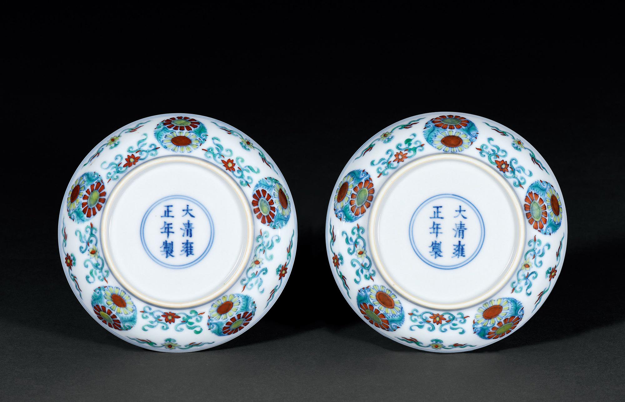 清雍正 斗彩团菊纹盘一对
