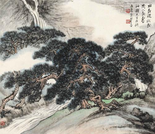 题识:水长流,松长茂,人长寿。汝耀先生五秩志庆。丙戌,郑午昌。
