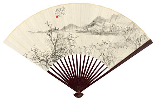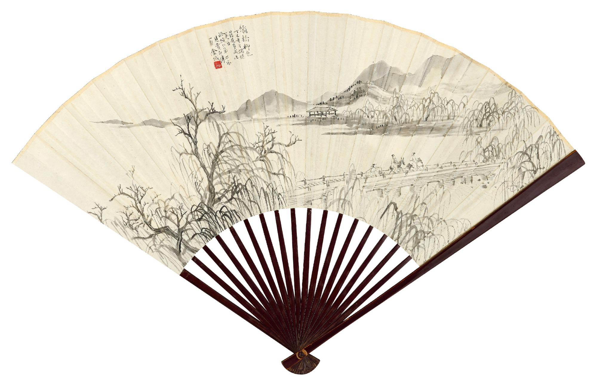 题识:灞桥柳色。丁巳重午偶忆旧游,画成此箑,为涤烦仁弟方家见赏,即博一粲,金城。