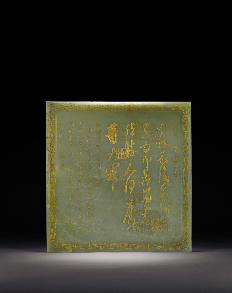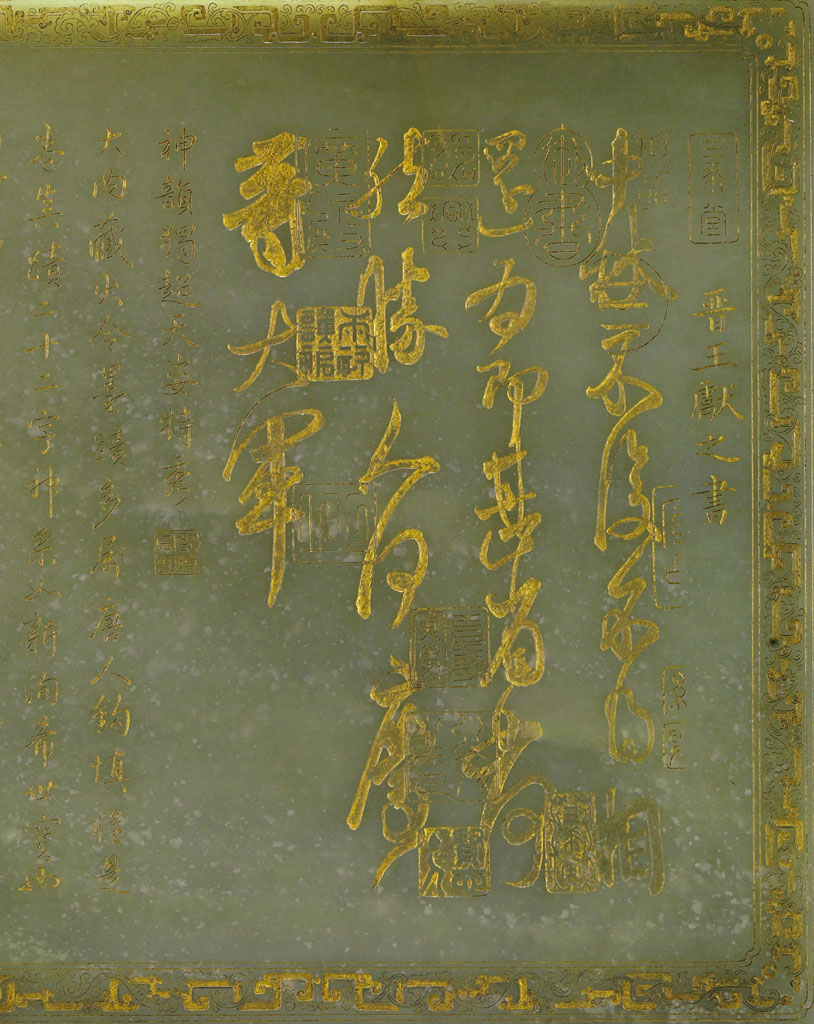 说明:拍品为三希堂珍藏王献之《中秋帖》的刻玉之作,玉料规整硕大,质地清润,厚重有力。