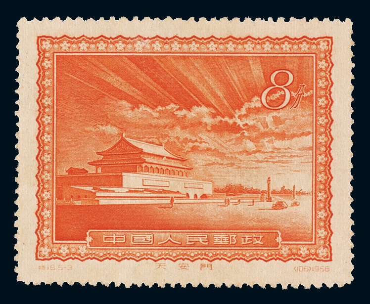 ★1956年特15首都名胜天安门图“放光芒”撤消发行邮票一枚,新中国着名珍邮之一,珍罕,上中品
