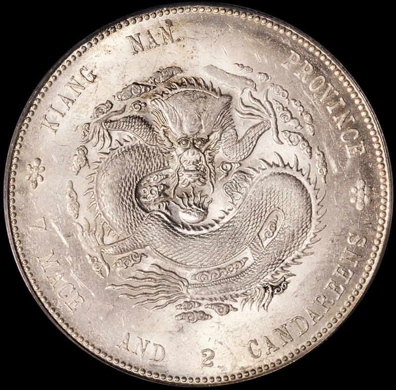 “江南戌戊错版”、“辛丑五点花”、“癸卯无花”、“辛丑无英文”等,均是江南银币最为珍罕的品种,而寻找这些罕少品种的高等级品相,又是收藏者梦寐以求的目标。此枚辛丑无英文集品种的罕少与品相的顶级于一身,可遇而不可求,实属江南银币之大珍品。