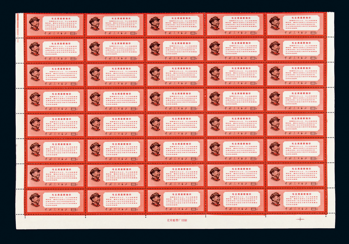 ★ 1968年文13邮票四十枚方连,带三边边纸及厂铭、色标、规矩线,上中品
