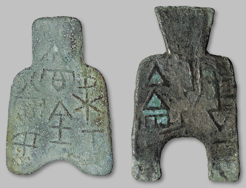 战国时期"梁正币百当 寽 ", "安邑二 釿 "桥裆布各一枚, 高: 59厘米, 65厘米, 普品至美品