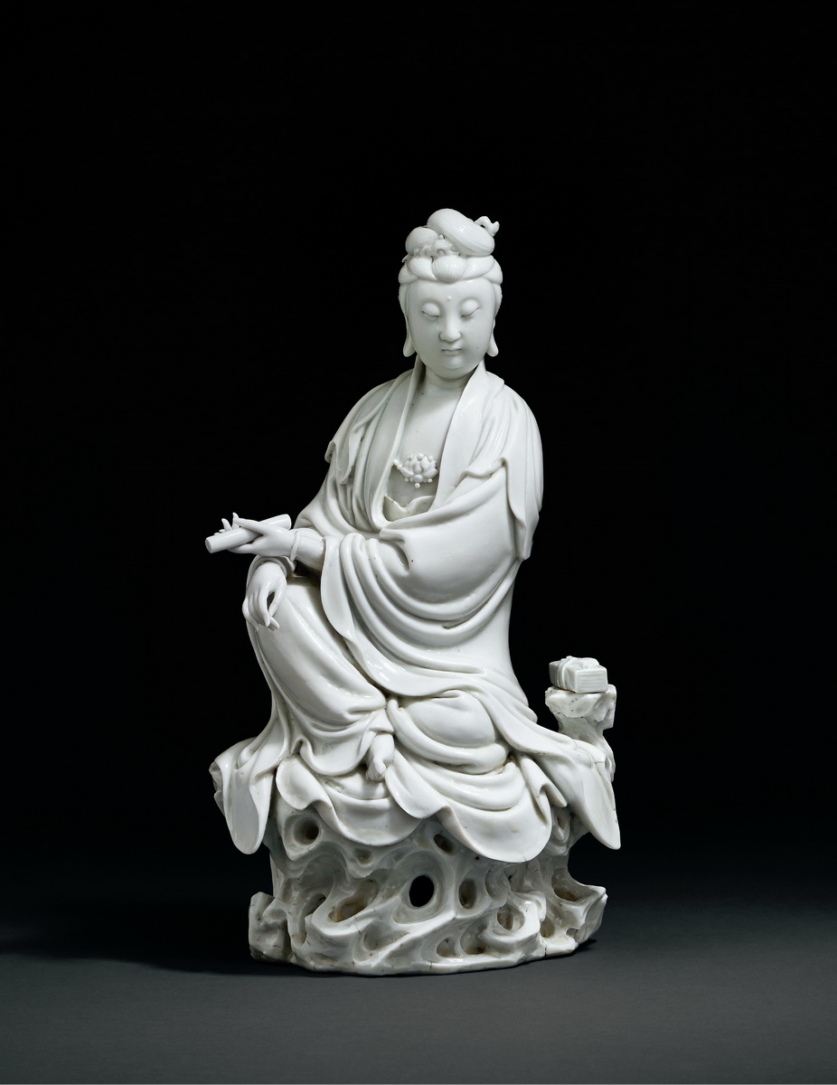 A DEHUA WHITE GLAZED FIGURE OF SEATED GUANYIN Late 16th Century/Early 17th Century