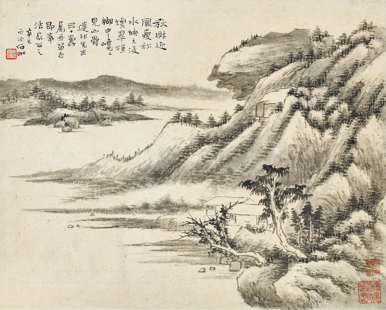Signed Shijia, dated xinsi,1941, with a dedication, with two seals of the artist and one seal of the collector.