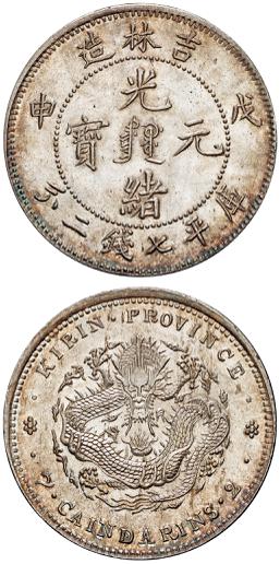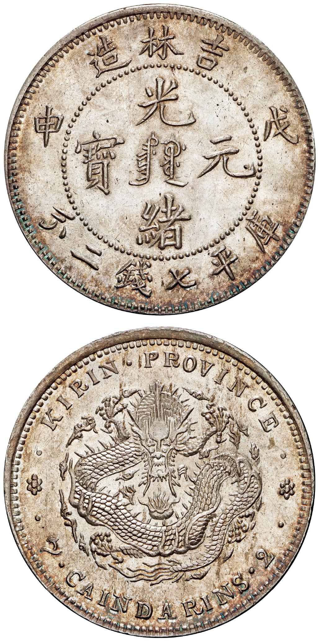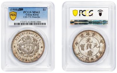 1908, Kuang Hsu Yuan Pao Silver Coin, 7.2 Mace, Kirin Province, Extremely Rare, PCGS MS63 (No.1)