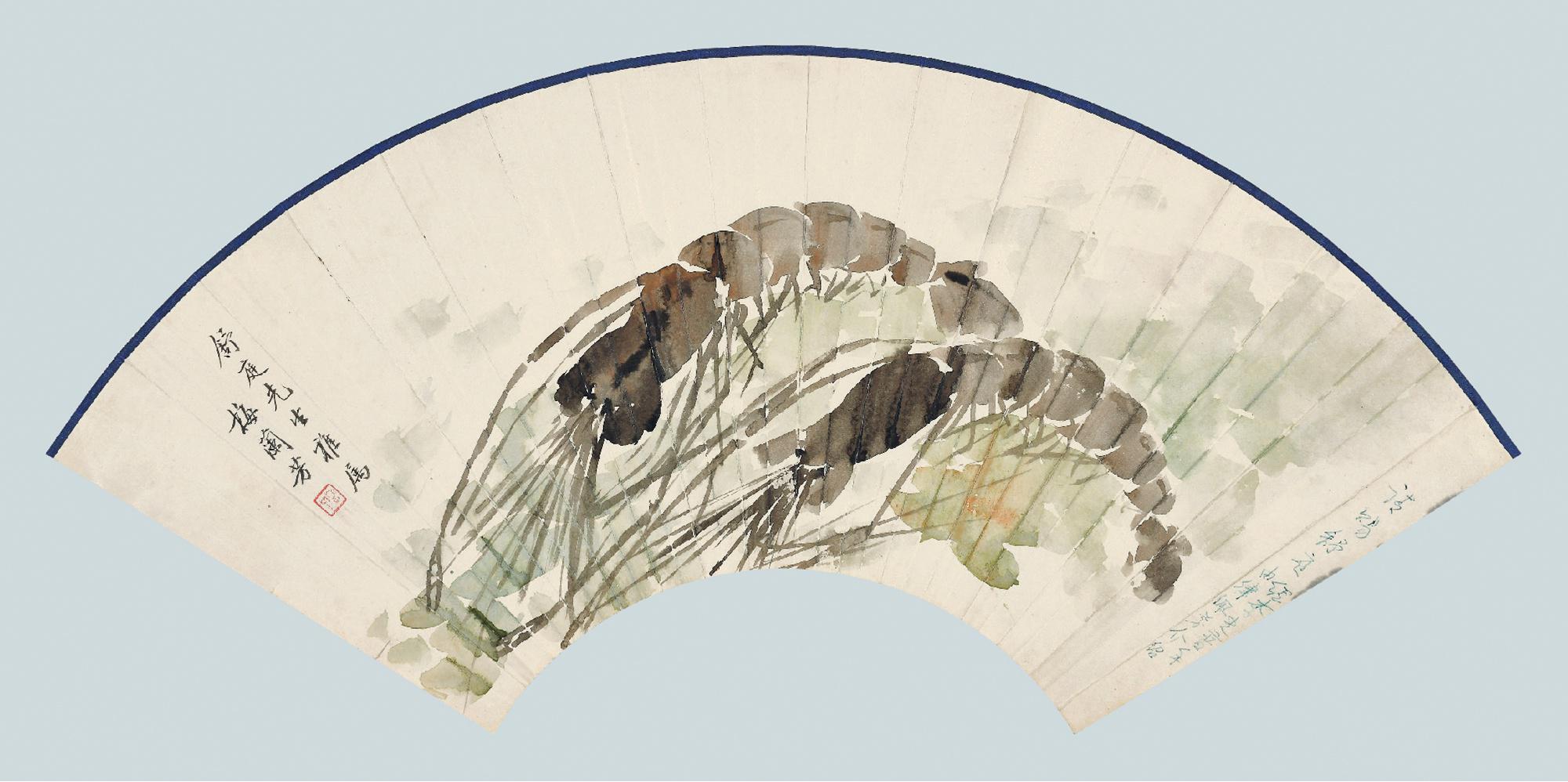 TEXTURE: Folding fan, ink and color on paper.
