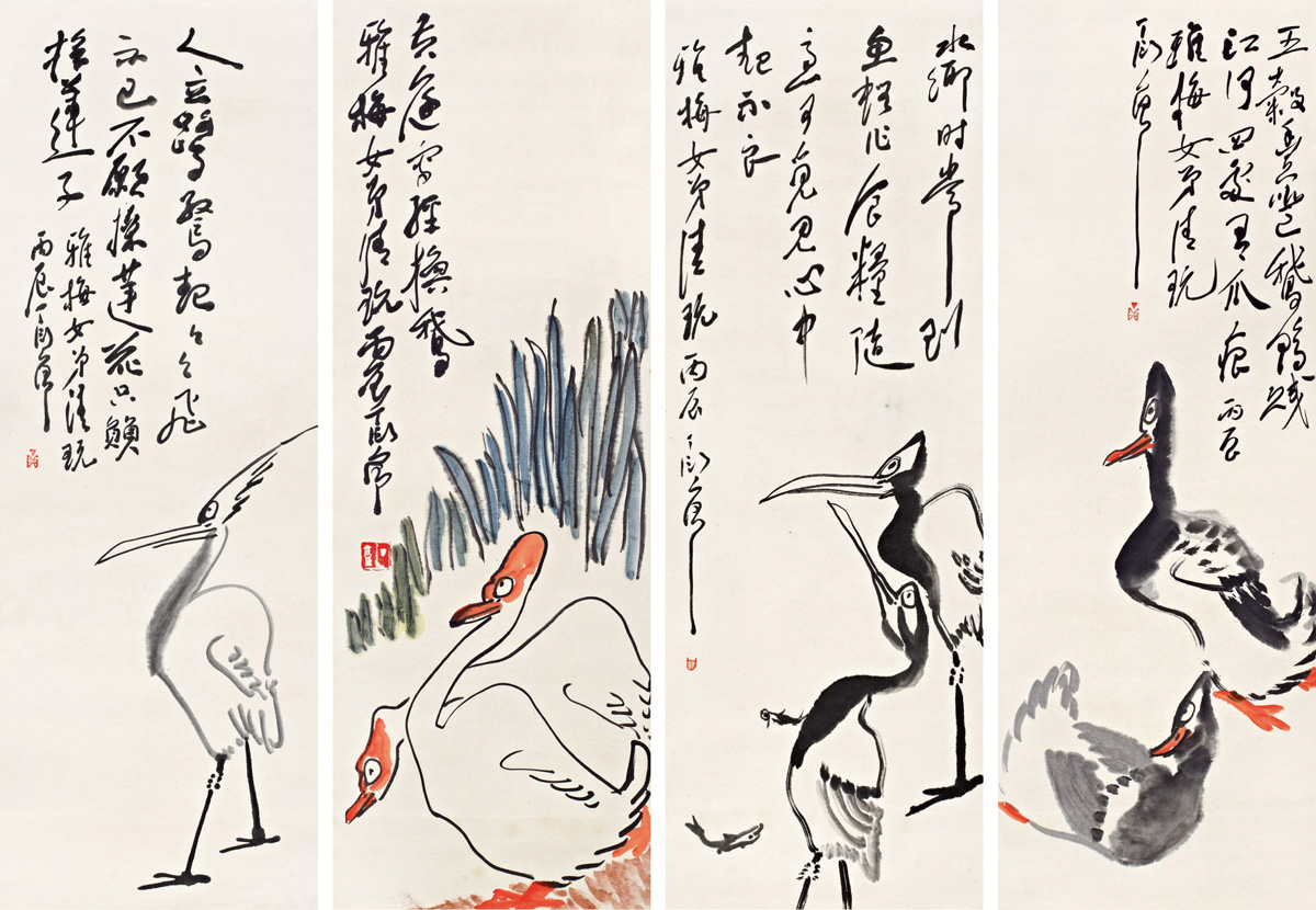 Signed Ding Yanyong on each piece, dated bingchen,1976, with a dedication and four seals of the artist.