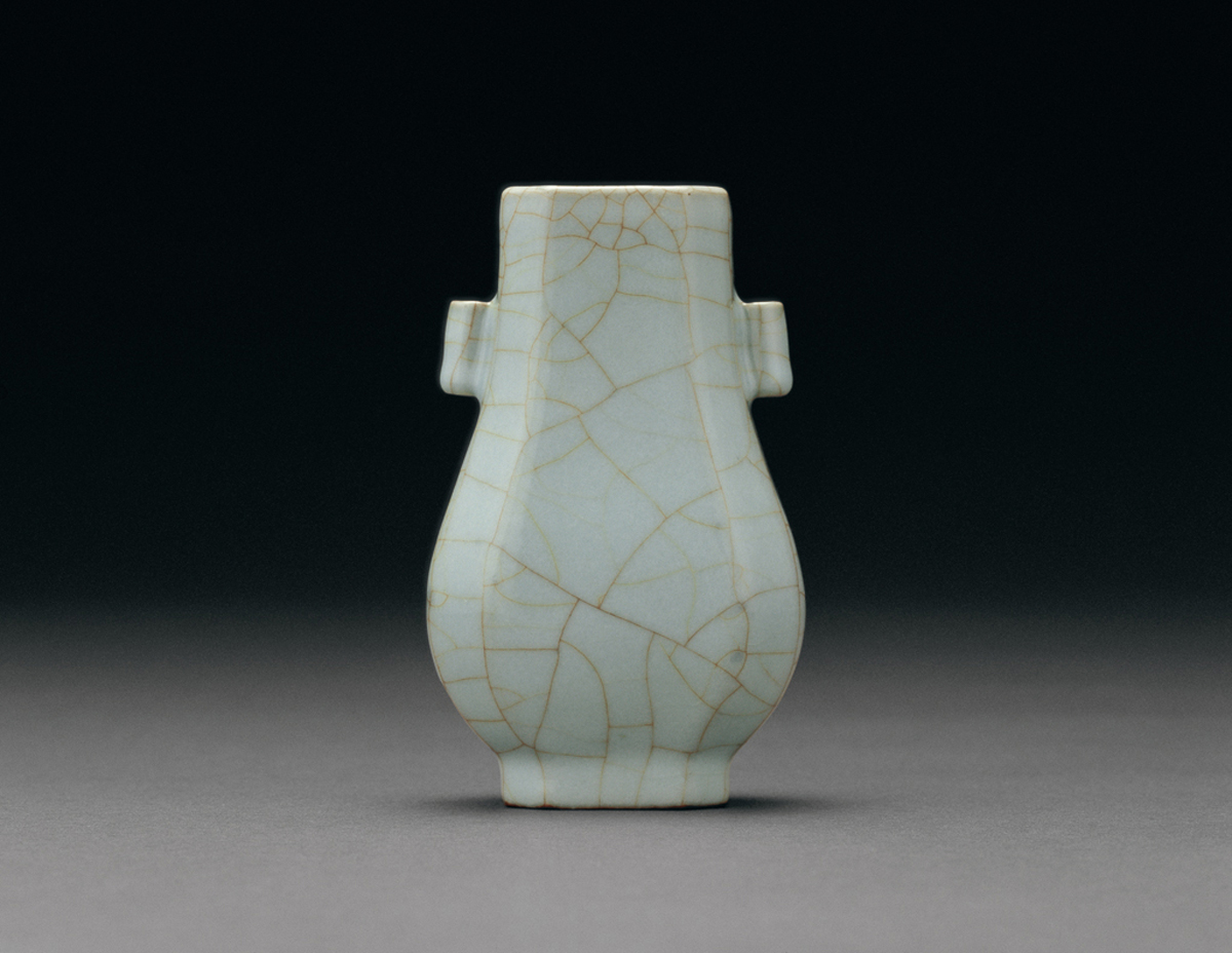 A SMALL RU-TYPE PEAR-SHAPED VASE Seal mark and period of Qianlong, Qing Dynasty