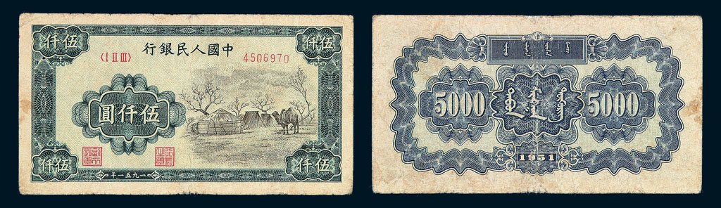 null 1951 The People's Bank of China, 1st Print, $5000, XF