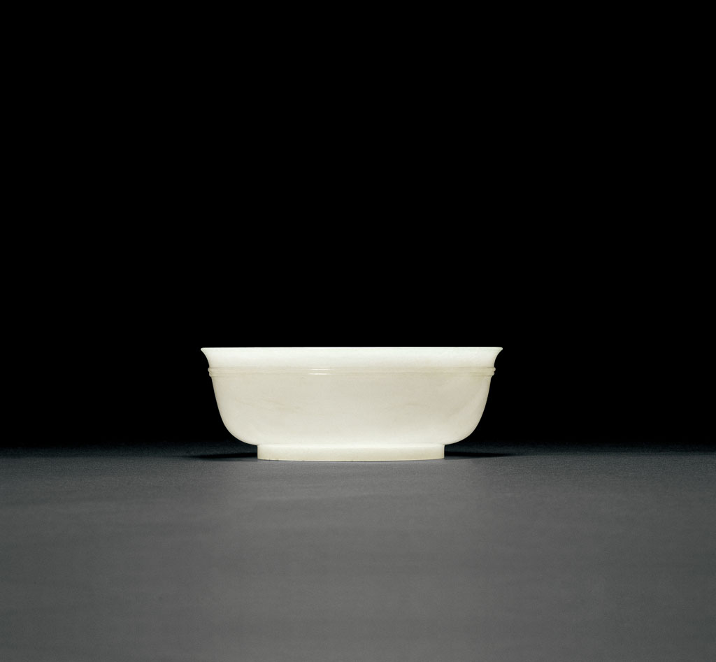 Mark and period of Jiaqing, Qing Dynasty A FINELY CARVED WHITE JADE BOWL