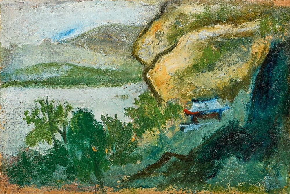 | 关良 山区风景 纸板 油画 1950 年代 |