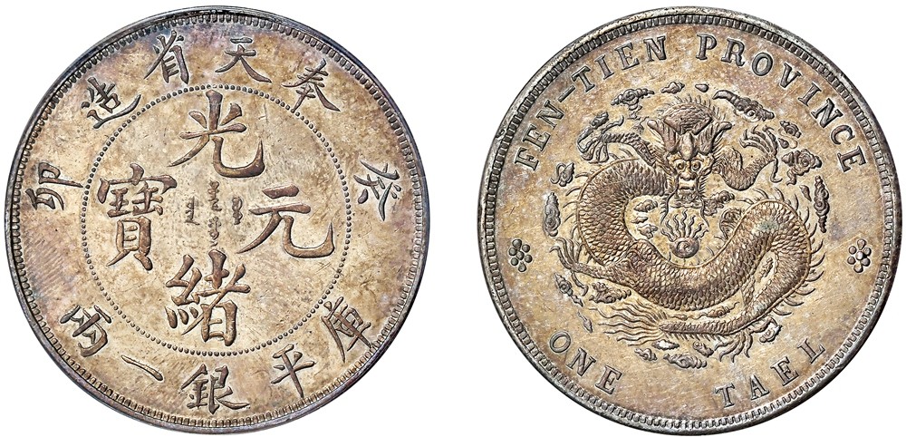 中国龙银大珍之首——奉天癸卯一两样币(PCGS AU55),自光绪三十年首次见诸官方记载为世人所知后,一百二十年来孑然一品,遗世独存,珍稀度无与伦比,历经耿爱德等四代收藏家递藏,脉络清晰,此次这枚中国传奇“币王”首次亮相国内拍卖,必将成为一颗最耀眼的明星。