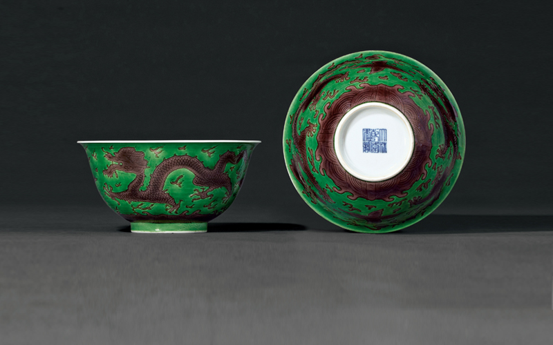 | LOT 824 | 清乾隆 绿地紫龙碗一对 | RMB:600,000-700,000 |