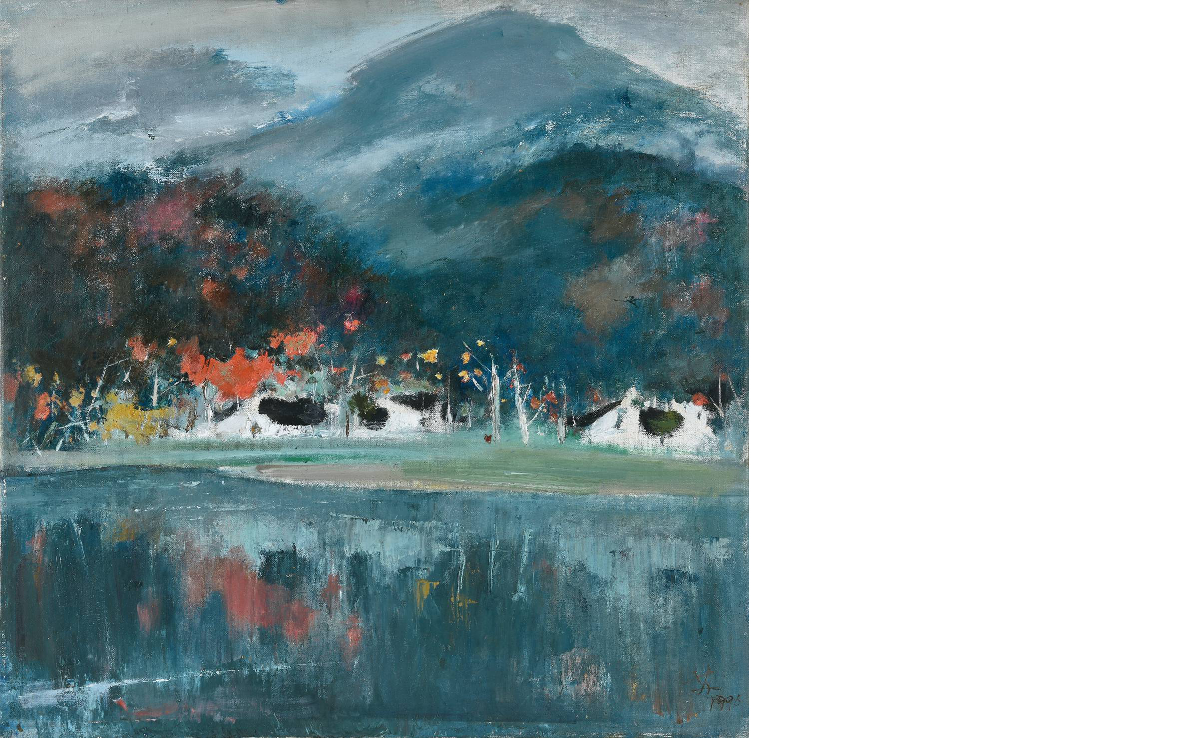 意象之美是苏天赐风景创作的独特魅力,所谓“意象”,苏天赐曾解释道:“意象出于愿与天地万物共生共荣的心灵,它将风云、张弛、兴衰、虚实、疏密重新排列,有其常理,而无定则……在画面建立起和谐的具有人文品格的家园。”正是凭借这种“外师造化,中得心源”的不断探索,苏天赐开创并发展了独具东方审美趣味的意象油画新式样,他始终秉承恩师林风眠“调和中西”的艺术理念,与同门吴冠中、赵无极、朱德群分别在各自领域探索,共同成为中国油画的领军人物。