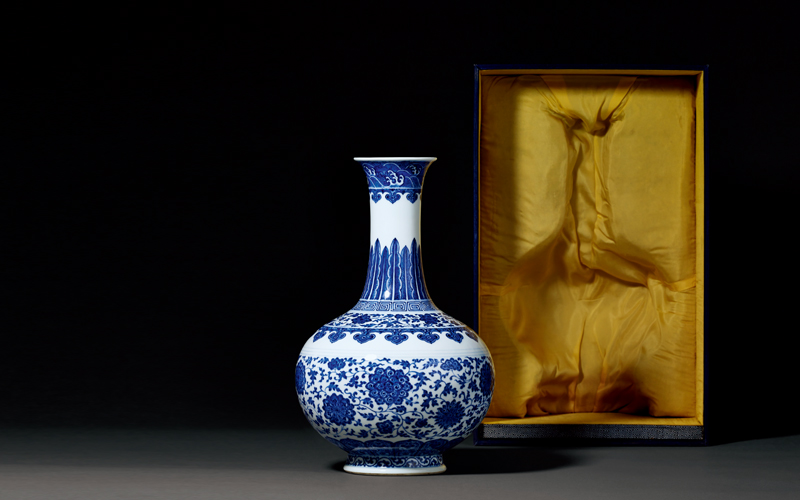 | LOT 613 | 清乾隆 青花缠枝莲纹赏瓶 | RMB:800,000-1,000,000 |