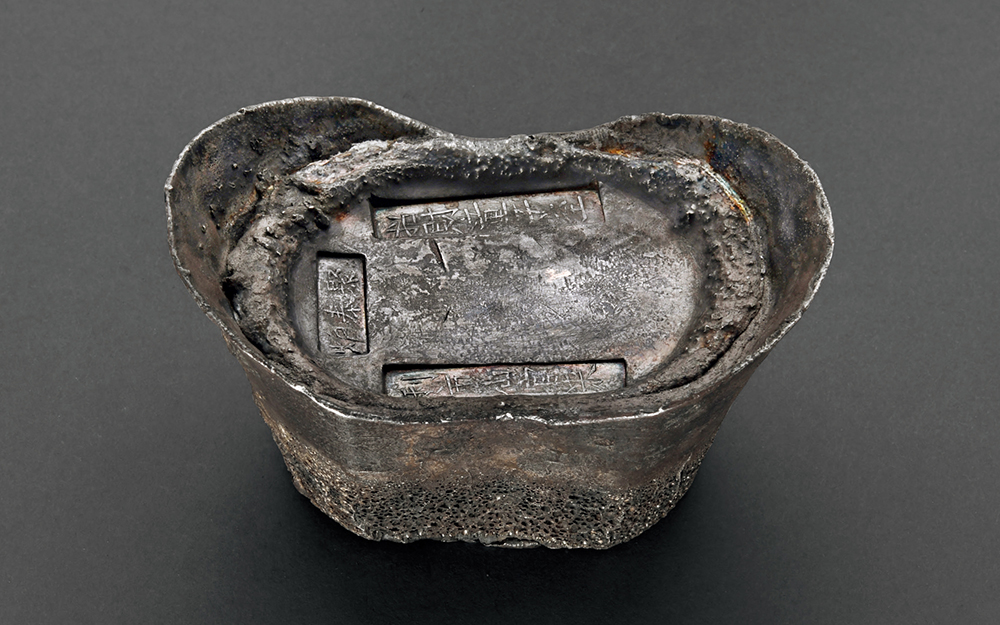 清代山东“聚泰炉 招财童子至 利市仙官来”五十两开炉吉语锭一枚,重量:1884.2克;开炉吉语锭是银炉在岁初开炉铸宝时,特别铸造的镇炉宝银,通常不流通,不仅成色足,工艺也较普通品更为精美,因铸造数量稀少、铭文寓意吉祥,常被作为镇宅之宝,深受藏家的追捧;拍品锭型规整,宝面开阔,三方戳记平正清晰,一侧外壁阴刻花码“〩”(9),另有经手小戳二处,浆色自然深沉,蜂窝均匀细密,内敛亮丽光泽,品相颇佳,GBCA MS60+ “招财童子”源于观音菩萨的协侍善财童子,系文殊菩萨在孟加拉湾沿岸居住过的福城首富福德长者的小儿子,出生时各种财宝自然涌出,故名善财,民间又称其为招财童子,后被作为幸运符,代表招财、开运、纳福、缘起、必胜、高中、平安之意。“利市仙官”则是中国民间流传的五路财神之一,即专门负责迎祥纳珍的北路利市仙官,最受商人欢迎,每到新年,必将其画像贴在门上,以图避邪禳灾、财运亨通。利市仙官崇拜在宋代就已流行,元代广为民间供奉,近世民间对利市仙官的信奉仍有保留,尤其在北方地区,过年多有张贴利市仙官年画的习俗。